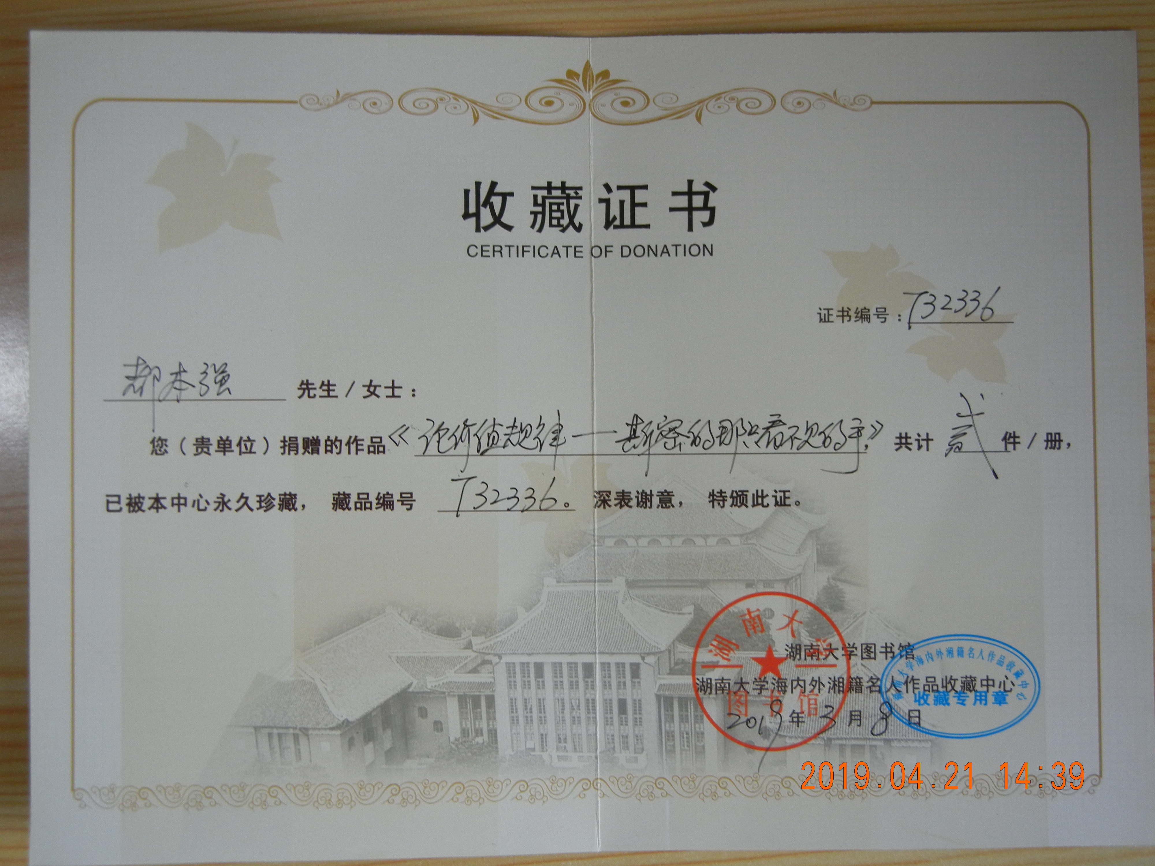 【本书已被国内多所大学收藏,以下是部分收藏证书】